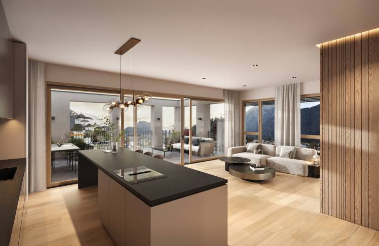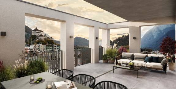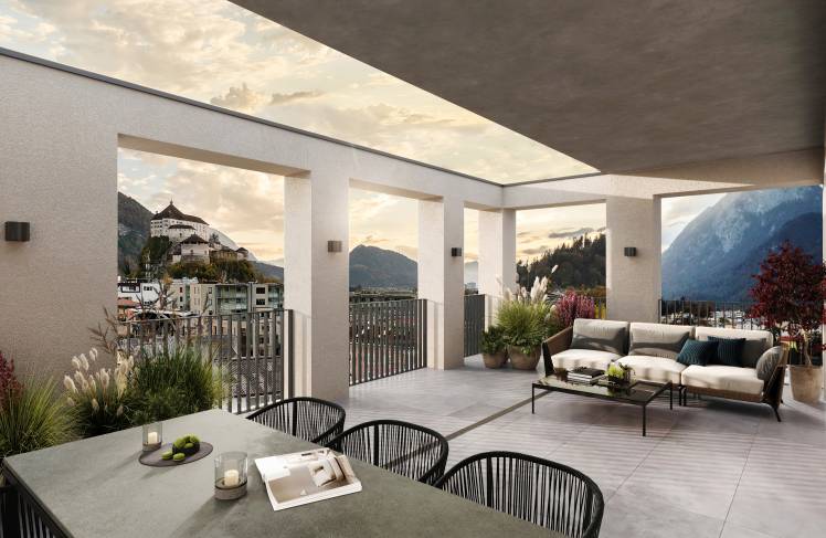 Im fünften Obergeschoss gelegen, bieten die exklusiven Dachgeschosswohnungen einen atemberaubenden Panoramablick über die Stadt Kufstein und Umgebung. Lichtdurchflutete Räume, geschaffen durch großzügige Fensterfronten, verleihen den Wohnungen eine einzigartige Atmosphäre. Die durchdachte Architektur und die hochwertige Ausstattung kreieren ein Wohnambiente, das keine Wünsche offenlässt. Ergänzt wird dies durch eine optimal gestaltete Raumaufteilung, die Komfort und Funktionalität harmonisch vereint.