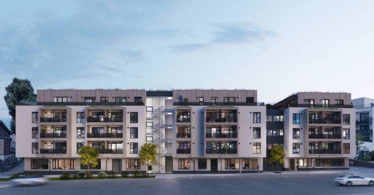 Es entstehen ca. 55 Wohnungen mit einem ausgewogenem Wohnungsmix aus Mikroapartments, Wohnungen mit 2 bis 4 Zimmern, Maisonettewohnungen sowie exklusiven Penthäusern. Durch die erhöhte Hanglage des Objektes ist ein beeindruckender Blick in die Chiemgauer Alpen möglich. Im Erdgeschoss befinden sich 2 bis 3 Gewerbeeinheiten. Ein begrünter Innenhof, geschützt von der Straße, bietet eine kleine Wohlfühloase inmitten der Stadt. Von dieser innerstädtischen Idylle kann auch von den Balkonen bzw. Terrassen, die meist innenhofseitig ausgerichtet sind, profitiert werden.