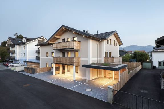 In wunderbar zentrumsnaher und doch ruhiger Wohnlage entstehen insgesamt 8 Wohneinheiten mit 2 bis 3 Zimmern zwischen 52 und 110m². Bei diesem Projekt trifft traditioneller Baustil auf modernste Standards. Im Erdgeschoss entstehen großzügige Terrassen mit Gärten und in den oberen Stockwerken sonnenverwöhnte Balkone mit Bergblick.